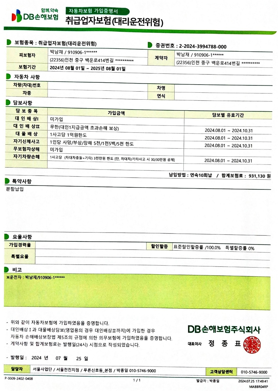 현대해상 보험증권