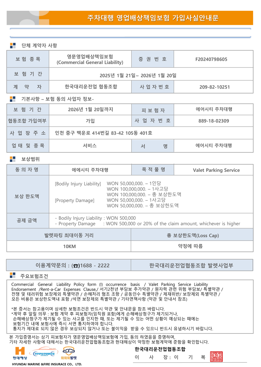 취급업자보험(대리운전위험)